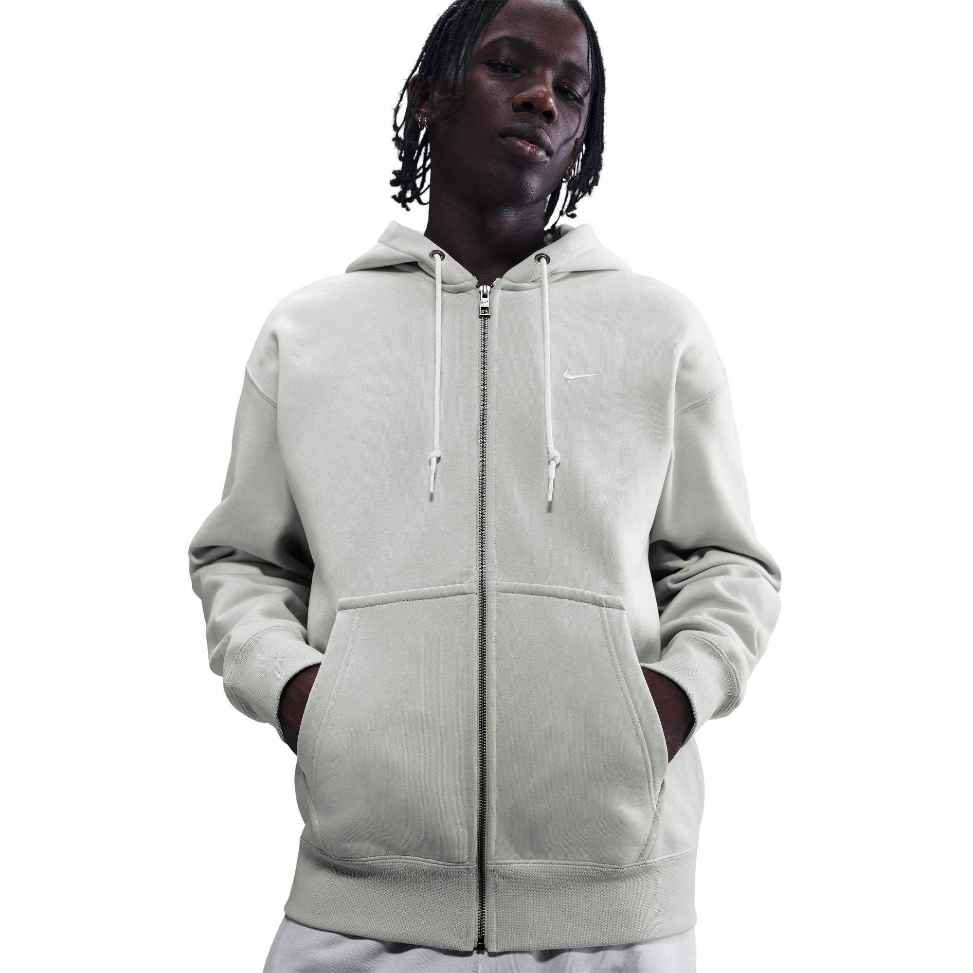 The Solo Swoosh Zip-Up Hoodie for men is a true classic, crafted from brushed fleece for exceptional softness and comfort. Its simple design makes it easy to pair with any outfit for a clean, laid-back look every day. The Solo Swoosh collection honors the athletic wear of the 90s and the minimalist aesthetic that helped Nike carve its own path through that exciting and eccentric decade in sports, fashion, and pop culture. The simplicity of the Swoosh was a breath of fresh air. The brushed fleece fabric offers unmatched softness. Its relaxed fit provides extra room in the chest, waist, and hips, ensuring optimal comfort and versatility for layering. The full-length metal zipper allows you to adjust your style and protection easily. The precisely knotted drawstring ends add a handcrafted finish.